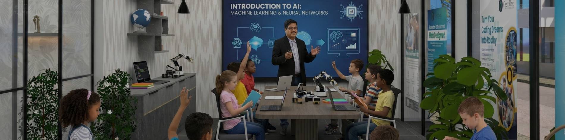 Our AI for Kids Summer Camp introduces young learners to the fascinating world of Artificial Intelligence in a simple and engaging way. This program combines technology, creativity, and practical learning to help children understand the basics of coding, AI tools, and digital innovation.